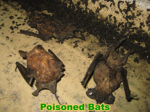 Firstly, the poison may not be effective to actually kill the bat, so all you could be doing is seriously injuring the animal.